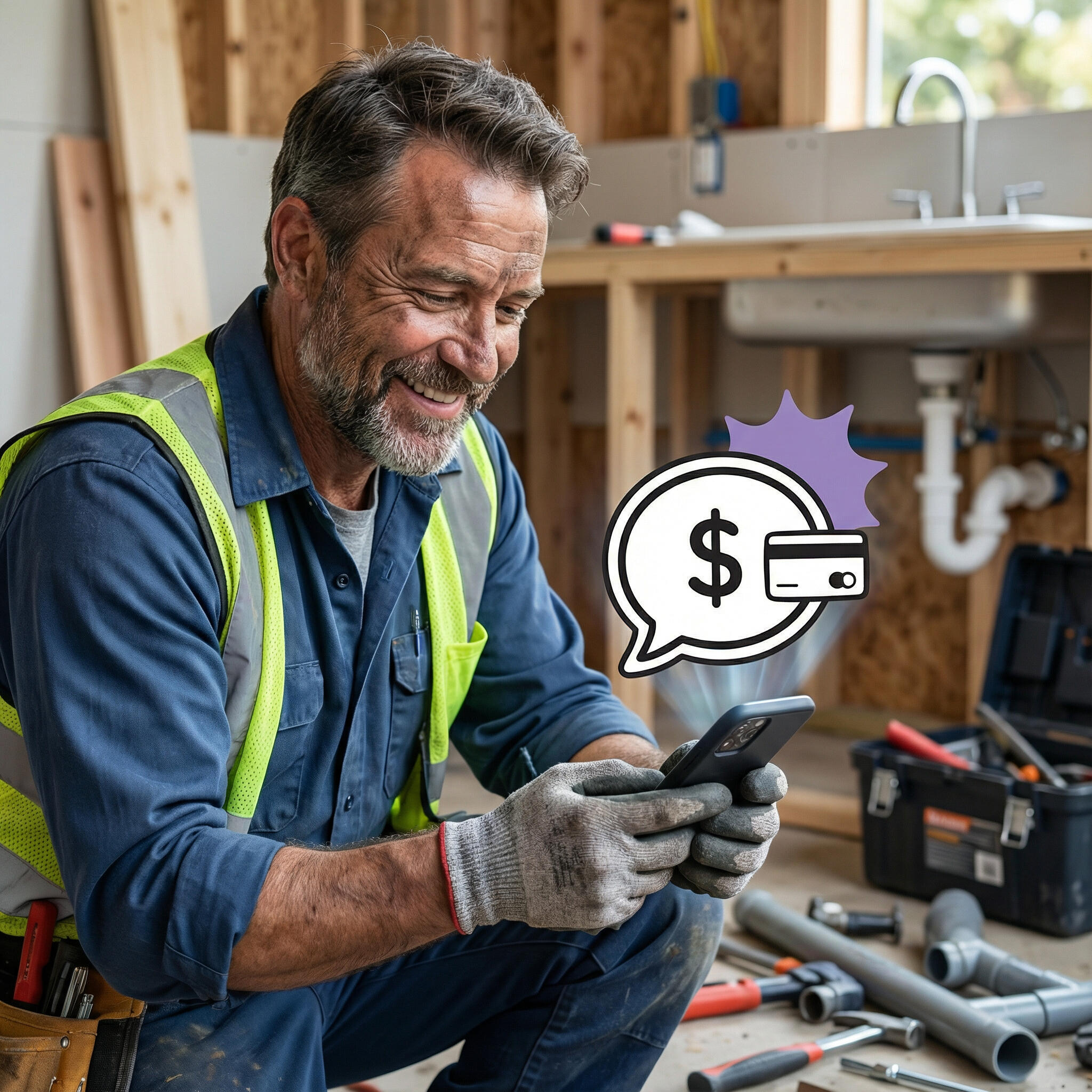 Customers pay directly in the text conversation without clicking links or leaving the thread.